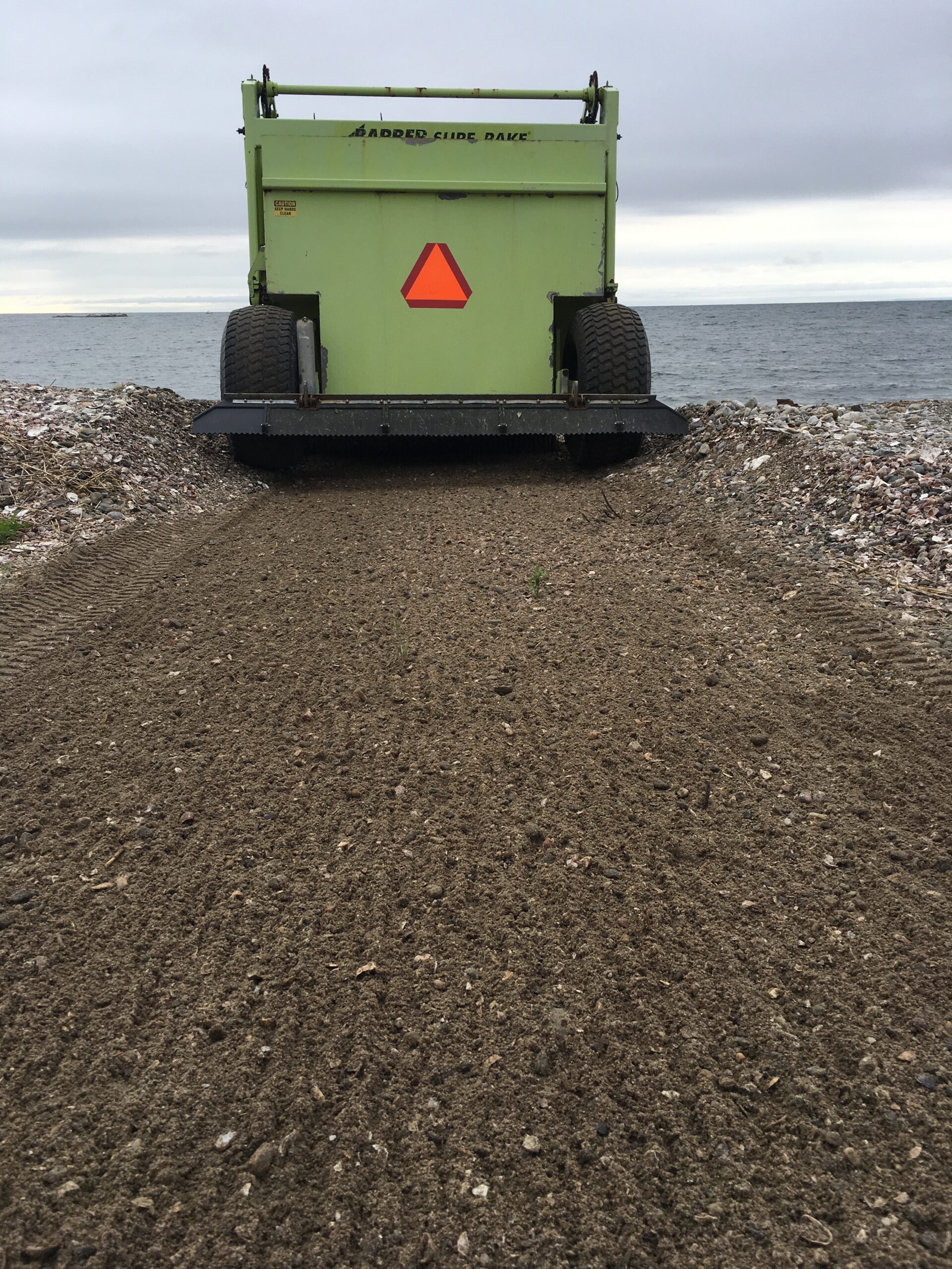 By raising the moldboard and exposing more tines and traveling at a lower ground speed, operators can then skim the surface of the beach to remove large debris. The machine can also be lifted with the three-point-hitch and lowered on top of larger debris to collect it. Many teams do a quick “bulk pass” first, then a slower “detail pass” for fine material.